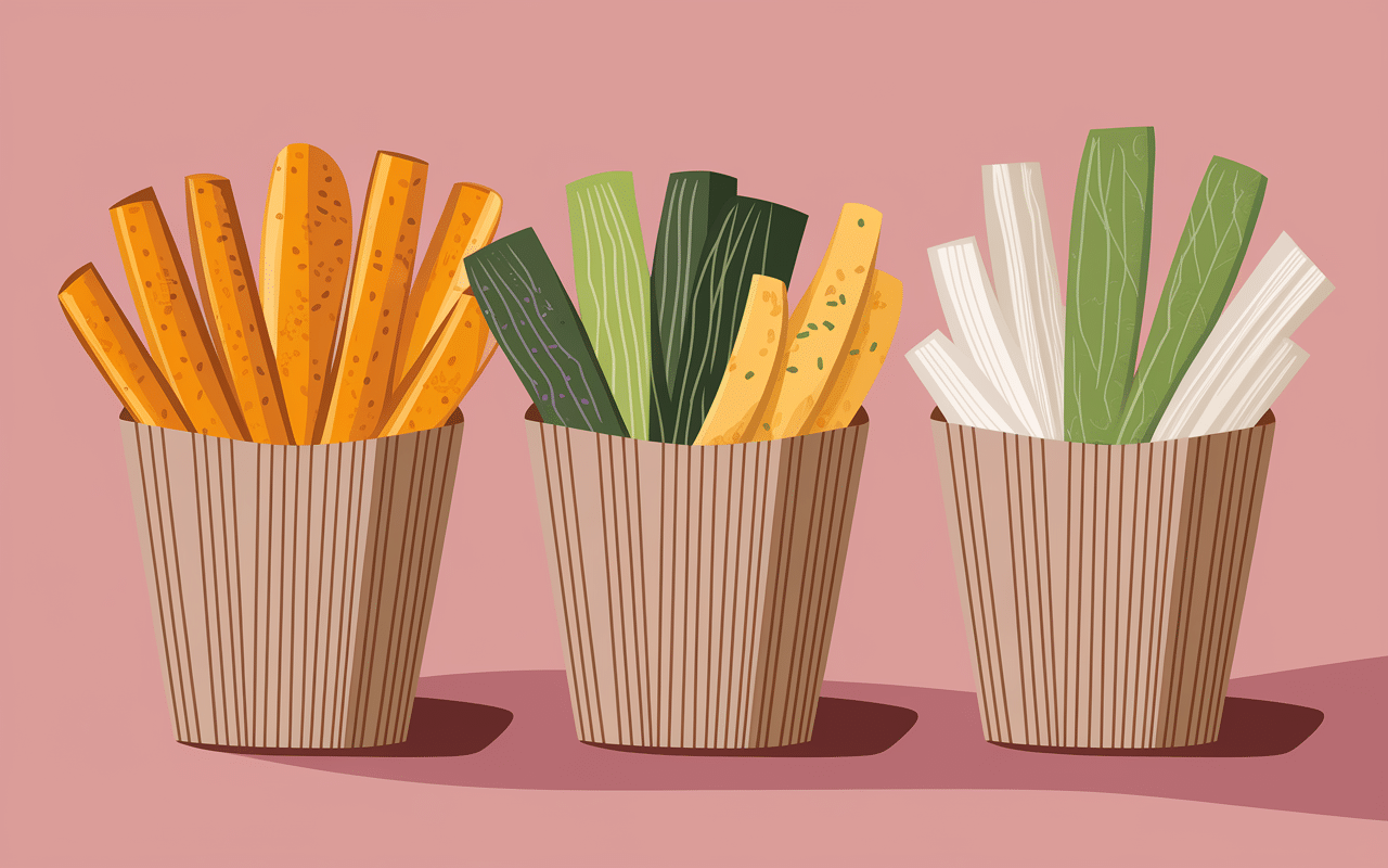 J’adore surprendre mes clients avec des frites de panais ou de betterave. Ces légumes racines apportent une douceur naturelle qui se marie parfaitement avec la richesse d’un burger. Pour un accompagnement burger original, je prépare aussi des chips de légumes au four : courgettes, aubergines, ou même des radis noirs tranchés finement.